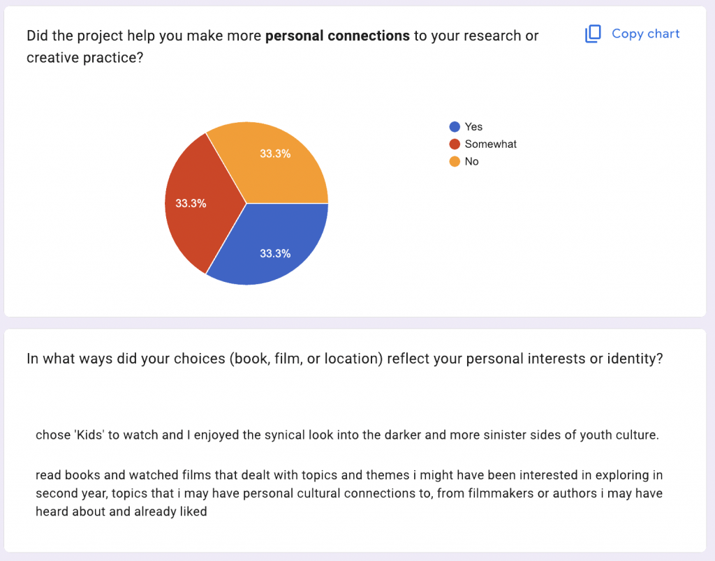 Students who were motivated tended to cite: The curated nature of the reading/film lists, and the sense that the task was manageable rather than overwhelming.