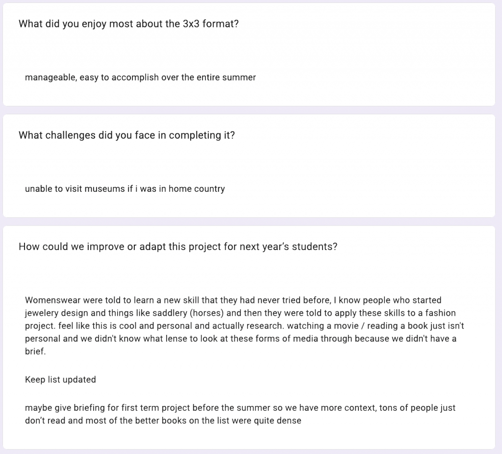 Despite mixed engagement, the majority of students support continuing the project. Students who recommended against it tended to cite a lack of clarity and drew comparisons with other pathways (e.g. womenswear being set a more “active” task)