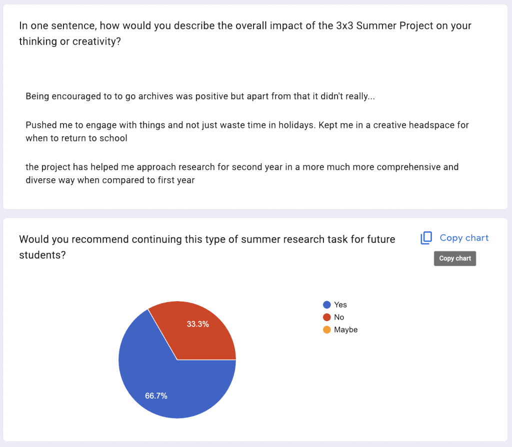 I think this split suggests a difference in research confidence, especially around reading. Students who self-identified as “not confident readers” struggled to access the conceptual intention of the project.